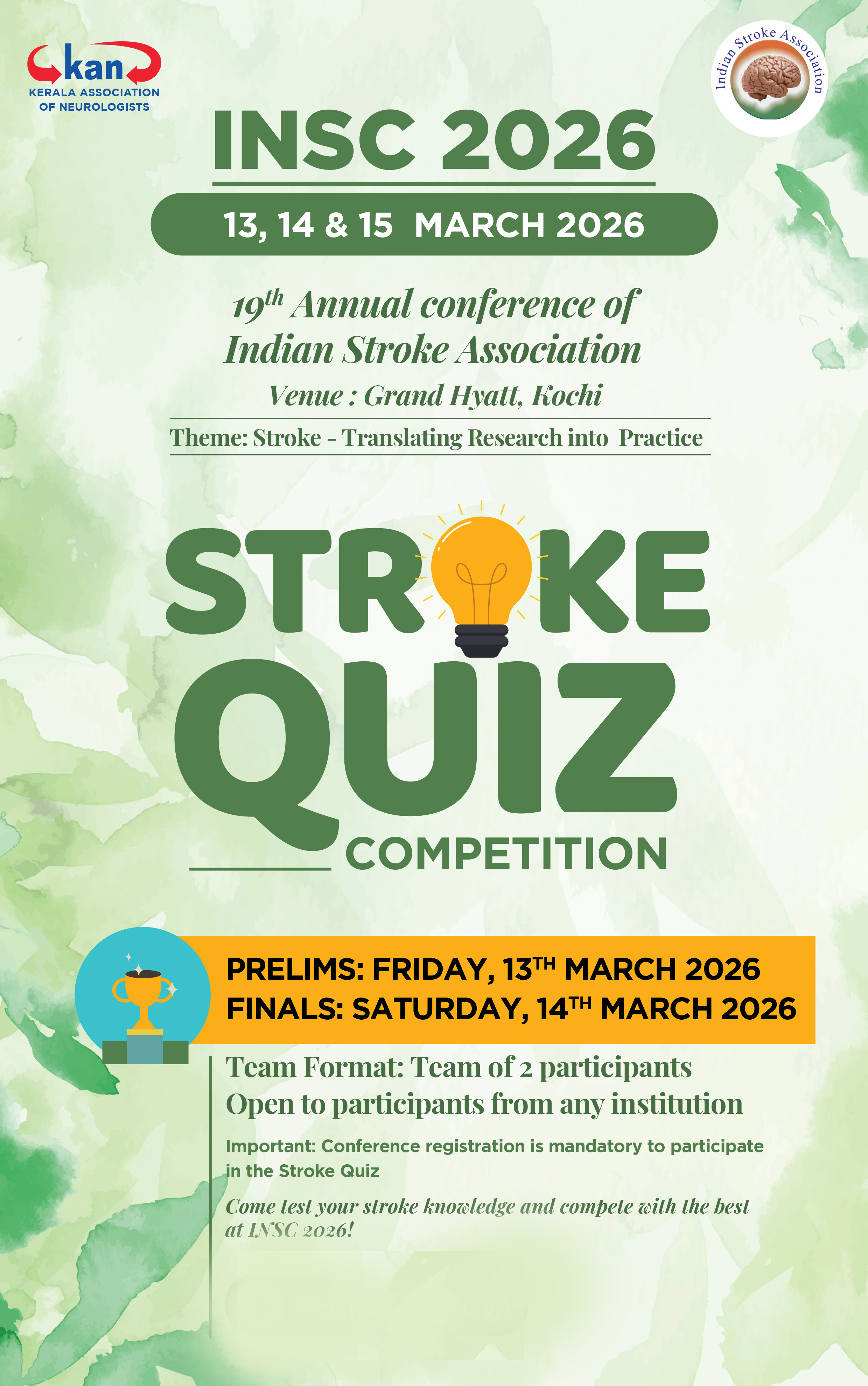 We look forward to welcoming you to Kochi in March 2026 and we promise you an exciting and enriching experience. We look forward to your active participation that will drive the future of stroke care and research.